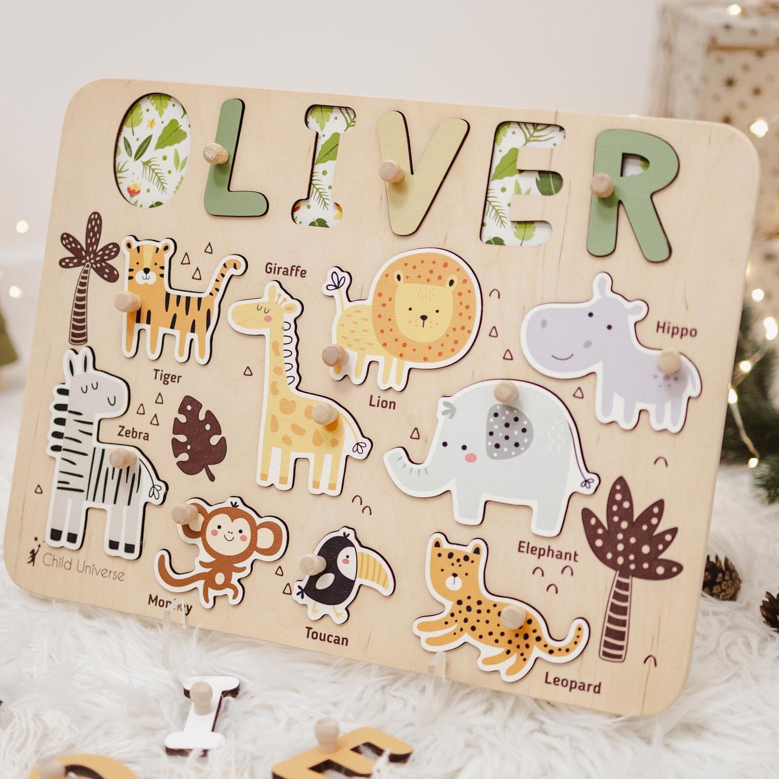 The Jungle Puzzle Board for Kids is more than a toy—it’s an heirloom-quality educational tool and a heartfelt keepsake rolled into one. From strengthening early developmental skills to creating joyful play moments, this name puzzle blends purpose, beauty, and fun in every handcrafted piece.