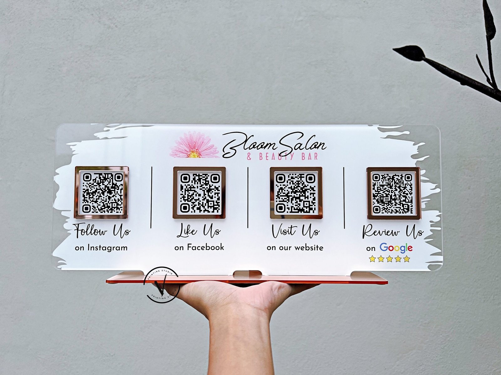 Recommendation: Revolutionize your salon, beautician, or hairdresser services’ marketing efforts with our Multi QR Code Social Media Sign designed for beauty businesses. Enable seamless social media engagement, effortless payments, and enhanced customer connections through a single, convenient signage solution. Strengthen brand loyalty, attract new clients, and stay ahead in the competitive beauty industry with this innovative marketing tool tailored to your beauty business needs.